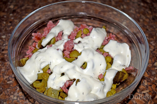 ![]() Zutaten Heißgeräucherter Salami — nach Geschmack Grüne Erbsen aus der Dose — nach Geschmack Eingelegte Gurken — nach Geschmack Mayonnaise — nach Geschmack Tartlets — nach Geschmack ![]() Zubereitung Salami und Gurken schneiden. ![]() Alles in einer Salatschüssel vermengen, einschließlich der grünen Erbsen aus der Dose. ![]() Mit Mayonnaise würzen. Gut vermengen. Die Tartlets vorbereiten. ![]() Mit einem Teelöffel die Tartlets mit der Füllung füllen. ![]() Nach Belieben können die Tartlets mit gemahlenem schwarzem Pfeffer bestreut und/oder mit einem Petersilienzweig garniert werden.