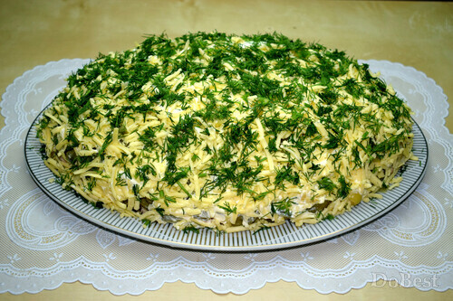 ![]() Zutaten Heißgeräuchertes Hähnchenfilet — nach Geschmack Chinakohl — nach Geschmack Gelber Käse — nach Geschmack Gewürzgurken — nach Geschmack Erbsen aus der Dose — nach Geschmack Eingelegte Peperoni — nach Geschmack Lauch — nach Geschmack Dill — nach Geschmack Salz — nach Geschmack Mayonnaise oder Mayonnaise-basierte Sauce — nach Geschmack ![]() Zubereitung Schneide das Hähnchenfleisch, den Chinakohl, die Gewürzgurken, die Peperoni und den Lauch klein. Hacke den Dill und reibe den Käse. ![]() Lege eine Schicht Chinakohl auf einen Teller. ![]() Bedecke den Chinakohl mit einer dicken Zickzack-Schicht Mayonnaise oder einem feinen Mayonnaise-Gitter. Lege den Lauch darauf. ![]() Lege eine Schicht Erbsen aus der Dose darauf. ![]() Bedecke die Erbsen aus der Dose mit einer dicken Zickzack-Schicht Mayonnaise oder einem feinen Mayonnaise-Gitter. ![]() Lege eine Schicht Hähnchenfleisch darauf. ![]() Bedecke das Hähnchenfleisch mit einer dicken Zickzack-Schicht Mayonnaise oder einem feinen Mayonnaise-Gitter. ![]() Lege eine Schicht Gewürzgurken darauf. ![]() Dann eine Schicht eingelegte Peperoni. ![]() Lege eine Schicht geriebenen Käse darauf. ![]() Bedecke den Käse mit einer dicken Zickzack-Schicht Mayonnaise oder einem feinen Mayonnaise-Gitter. ![]() Lege die nächste Schicht geriebenen Käse darauf. ![]() Beende den Salat mit einer Schicht gehackten Dills. ![]() |