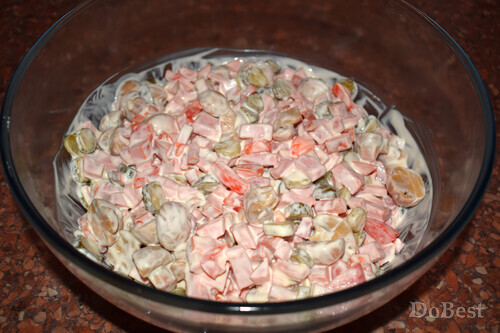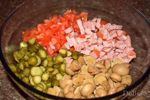 ![]() Zutaten Mortadella — nach Geschmack Eingelegte Champignons — nach Geschmack Gewürzgurken — nach Geschmack Tomaten — nach Geschmack Salz — nach Geschmack Mayonnaise — nach Geschmack ![]() Zubereitung Mortadella, eingelegte Champignons, Gewürzgurken und Tomaten klein schneiden. Alle Zutaten in einer Salatschüssel vermengen. ![]() Den Salat mit Mayonnaise anrichten und gut vermischen. Bei Bedarf Salz hinzufügen.
