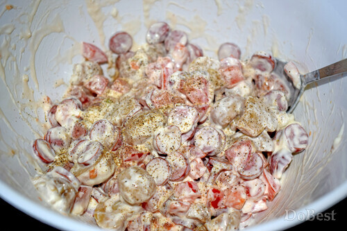 ![]() Zutaten Jägerwürste — nach Geschmack Tomaten — nach Geschmack Eingelegte Champignons — nach Geschmack Schwarzer Pfeffer, gemahlen — nach Geschmack Mayonnaise — nach Geschmack Frische oder getrocknete Kräuter — zur Dekoration ![]() Zubereitung Die Würste, Tomaten und eingelegten Champignons klein schneiden. Alle Zutaten in einer Salatschüssel vermengen. ![]() Mayonnaise hinzufügen. Gemahlenen schwarzen Pfeffer hinzufügen. Gut durchmischen. ![]() Mit getrockneter Petersilie oder frischen Kräutern garnieren.