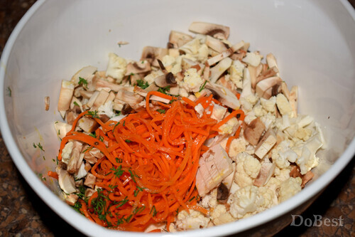 ![]() Zutaten Blumenkohl — nach Geschmack Koreanische Karotten — nach Geschmack Champignons — nach Geschmack Dill — nach Geschmack Schwarzer Pfeffer, gemahlen — nach Geschmack Mayonnaise — nach Geschmack ![]() Zubereitung Blumenkohl und Champignons schneiden. Den Dill hacken. Alles in einer Salatschüssel vermengen. ![]() Schwarzen gemahlenen Pfeffer hinzufügen. Mit Mayonnaise würzen. ![]() Gut vermengen.