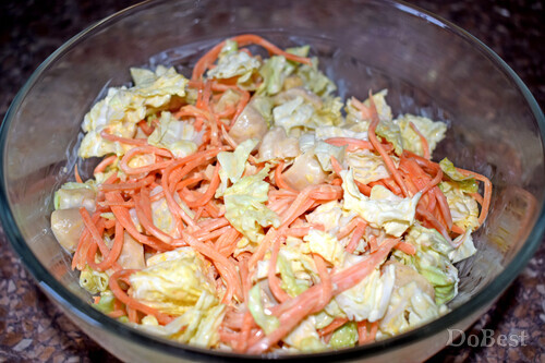 ![]() Zutaten Chinakohl — nach Geschmack Koreanische Karotten — nach Geschmack Eingelegte Champignons — nach Geschmack Mayonnaise — nach Geschmack ![]() Zubereitung Chinakohl und Champignons schneiden. ![]() Chinakohl, Champignons und koreanische Karotten in einer Salatschüssel vermengen. ![]() Mit Mayonnaise würzen. Gut vermengen.
