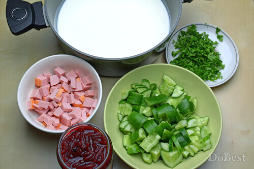 ![]() Zutaten Trinkwasser – je nach Topfgröße Kefir – in der Regel reicht 1 Liter Eingelegte Rote Bete – meist genügt ein handelsübliches Glas Gurken – nach Geschmack Bologneser Wurst – nach Geschmack Frühlingszwiebeln – nach Geschmack Dill – nach Geschmack Petersilie – nach Geschmack Hühnereier – nach Geschmack Zwiebel – nach Geschmack Scharfe rote Paprika – nach Geschmack ![]() Zubereitung Die Gurken und die Wurst in Würfel schneiden, die Kräuter fein hacken. Den Kefir in einen Topf gießen. Eingelegte Rote Bete, Gurken, Wurst und Kräuter hinzufügen. Die benötigte Menge Wasser dazugeben. ![]() Vor dem Servieren ein Ei sowie etwas scharfe rote Paprika in die Suppe geben und mit ein paar Ringen weißer oder roter Zwiebel garnieren. ![]() ![]() |