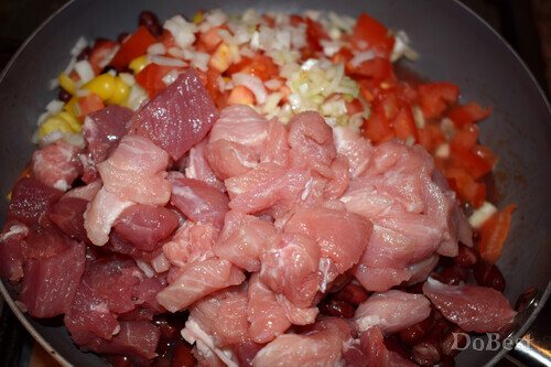 ![]() Zutaten Schweinefleisch — ca. 700 g Rote Bohnen aus der Dose — 1 Glas Tomate — 1 Stück Zitrone — 1/3 Teil Eingelegte Pepperoni-Paprika — nach Geschmack Zwiebel — 1/4 Teil Salz — nach Geschmack Schwarzer Pfeffer, gemahlen — nach Geschmack Rotes Paprikapulver — nach Geschmack Curry-Gewürz — nach Geschmack Kreuzkümmel — nach Geschmack ![]() Zubereitung Tomate, Zwiebel, Zitrone und Pepperoni-Paprika klein schneiden. ![]() Schweinefleisch in kleine Würfel schneiden. ![]() Alles in eine Pfanne geben und umrühren. ![]() ![]() Salz und Gewürze hinzufügen. Gut vermischen. Bei schwacher Hitze mindestens eine halbe Stunde köcheln lassen und gelegentlich umrühren.