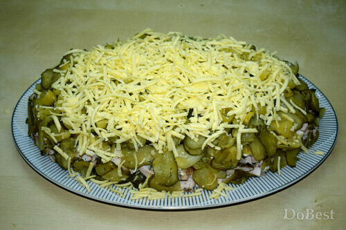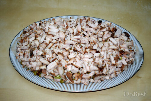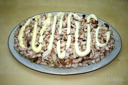 ![]() Ingredientes Filete de pollo ahumado en caliente — al gusto Col china — al gusto Queso amarillo — al gusto Pepinillos en vinagre — al gusto Guisantes verdes en conserva — al gusto Pimientos pepperoni en vinagre — al gusto Puerro — al gusto Eneldo — al gusto Sal — al gusto Mayonesa o salsa a base de mayonesa — al gusto ![]() Preparación Pica la carne de pollo, la col china, los pepinillos, los pimientos pepperoni y el puerro. Pica el eneldo y ralla el queso. ![]() Coloca una capa de col china en un plato. ![]() Cubre la col china con una capa espesa en zigzag de mayonesa o una fina malla de mayonesa. Coloca el puerro por encima. ![]() Coloca una capa de guisantes en conserva. ![]() Cubre los guisantes en conserva con una capa espesa en zigzag de mayonesa o una fina malla de mayonesa. ![]() Coloca una capa de carne de pollo. ![]() Cubre la carne de pollo con una capa espesa en zigzag de mayonesa o una fina malla de mayonesa. ![]() Coloca una capa de pepinillos en vinagre. ![]() Luego, una capa de pimientos pepperoni en vinagre. ![]() Coloca una capa de queso rallado. ![]() Cubre el queso con una capa espesa en zigzag de mayonesa o una fina malla de mayonesa. ![]() Coloca la siguiente capa de queso rallado. ![]() Termina la ensalada con una capa de eneldo picado. ![]() |