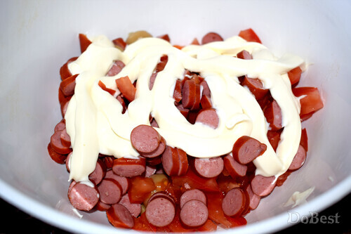 ![]() Ingredientes Salchichas tipo cazador — al gusto Tomates — al gusto Champiñones en escabeche — al gusto Pimienta negra molida — al gusto Mayonesa — al gusto Hierbas frescas o secas — para decorar ![]() Preparación Pique las salchichas, los tomates y los champiñones en escabeche. Mezcle todos los ingredientes en un bol para ensalada. ![]() Añada mayonesa. Agregue pimienta negra molida. Remueva bien. ![]() Decore con perejil seco o hierbas frescas.