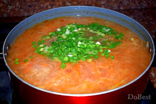 ![]() Ingredientes Chucrut — al gusto Patatas — al gusto Carne de res — al gusto Zanahoria — al gusto Cebolla verde — al gusto Chile — al gusto Sal — al gusto Especias — al gusto ![]() Preparación Cortar las patatas, la carne de res, la cebolla verde y el chile. Rallar la zanahoria. Poner todos los ingredientes, excepto la cebolla verde, en agua hirviendo con sal. ![]() Añadir condimentos al gusto. Cocinar la sopa a fuego lento durante al menos 50 minutos. ![]() Unos minutos antes de que termine la cocción, añadir la cebolla verde a la sopa.
