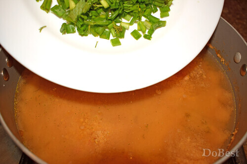 ![]() Ingredientes Filete de pollo — 1 ud. Tomates — 5 uds. Zanahorias — 2 uds. Cebolla encurtida — al gusto Chile — 1/3 de vaina Cebolla verde — al gusto Perejil — al gusto Eneldo — al gusto Sal — al gusto Pimienta roja molida — al gusto Condimento curry — al gusto ![]() Preparación Cortar los productos en trozos pequeños y colocarlos en la picadora. ![]() ![]() Triturar el contenido hasta obtener una papilla y colocarlo en agua hirviendo con sal y especias. ![]() Cocer la sopa a fuego lento durante unos treinta minutos. ![]() Picar finamente la cebolla verde, el perejil y el eneldo. ![]() ![]() Añadir las hierbas a la olla aproximadamente un par de minutos antes de que termine el tiempo de cocción de la sopa. ![]()