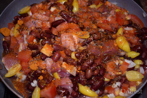 ![]() Ingredientes Cerdo — aproximadamente 700 g Frijoles rojos enlatados — 1 frasco Tomate — 1 unidad Limón — 1/3 parte Pimientos pepperoni en escabeche — al gusto Cebolla — 1/4 parte Sal — al gusto Pimienta negra molida — al gusto Pimentón molido — al gusto Condimento de curry — al gusto Comino — al gusto ![]() Preparación Picar el tomate, la cebolla, el limón y los pimientos pepperoni. ![]() Cortar el cerdo en cubos pequeños. ![]() Poner todo en una sartén y mezclar. ![]() ![]() Agregar sal y condimentos. Mezclar. Cocinar a fuego lento durante al menos media hora, revolviendo de vez en cuando.