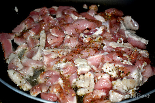 ![]() Ingredientes Cerdo — al gusto Sal — al gusto Pimienta negra molida — al gusto Curry — al gusto Albahaca seca — al gusto Chile molido — al gusto Pimentón dulce molido — al gusto Cilantro molido — al gusto Cebolla seca molida — al gusto Ajo seco molido — al gusto Mejorana seca — al gusto Nuez moscada molida — al gusto Salvia — al gusto ![]() Preparación Corta la carne de cerdo en trozos. ![]() Coloca los trozos de carne en una sartén previamente calentada y engrasada con aceite. Añade sal y especias. ![]() Fríelos, removiendo ocasionalmente. ![]() Cuanto más finos sean los trozos, más rápido se cocinarán. ![]()