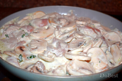 ![]() Ingredientes Filete de pollo — al gusto Champiñones — al gusto Sal — al gusto Condimentos — al gusto Mayonesa — al gusto ![]() Preparación Picar el filete de pollo y los champiñones. Poner todo en una sartén precalentada con un poco de aceite. Sazonar con sal y especias, cubrir con una capa de mayonesa y luego mezclar. ![]() ![]() Cocinar a fuego lento durante unos 20-30 minutos, removiendo de vez en cuando.