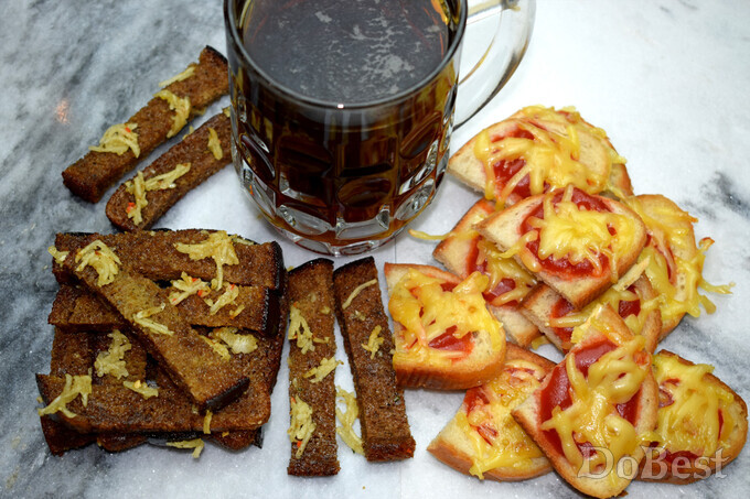 ![]() Ингредиенты Закуска №1 Черный хлеб — по вкусу Чеснок — по вкусу Соль или универсальная приправа — по вкусу ![]() Приготовление Нарезать хлеб полосками. Измельчить чеснок. ![]() На разогретую сковороду с растительным маслом выложить кусочки хлеба. ![]() Посолить или посыпать универсальной приправой и обжарить с двух сторон на среднем огне. ![]() Поместить сухари в глубокую емкость. После того, как они остынут, добавить чеснок и перемешать. ![]() Закуска №2 Белый хлеб — по вкусу Сыр — по вкусу Томатный соус — по вкусу Соль — по вкусу ![]() Приготовление Нарезать белый хлеб. На разогретую сковороду с растительным маслом выложить кусочки хлеба. Обжарить их с обеих сторон на среднем огне. Покрыть слоем томатного соуса и посыпать тертым сыром. Накрыть сковороду крышкой на пару минут, чтобы сыр немного расплавился. ![]() Смотрите также...