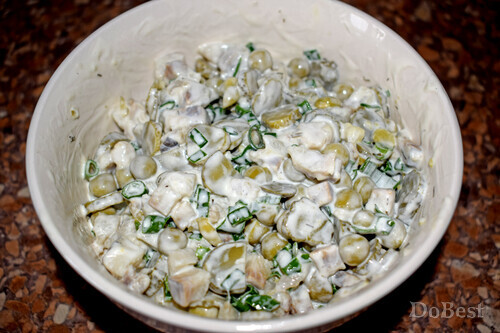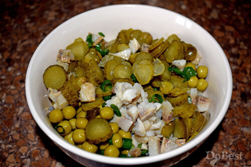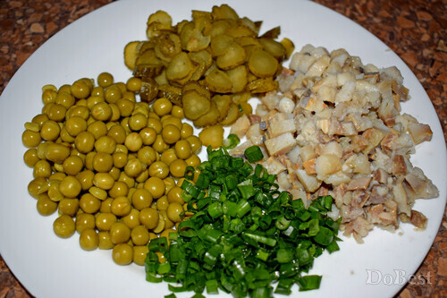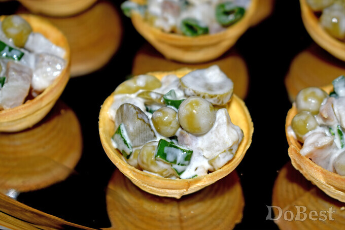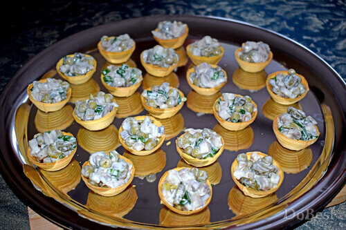 ![]() Ингредиенты Маринованная сельдь — по вкусу Консервированный зеленый горошек — по вкусу Маринованные огурцы — по вкусу Зеленый лук — по вкусу Майонез — по вкусу Тарталетки — по вкусу ![]() Приготовление Мелко нарезать сельдь, огурцы и зеленый лук. ![]() Смешать все в салатнице, включая консервированный зеленый горошек. ![]() Заправить майонезом. ![]() Перемешать. Подготовить тарталетки. ![]() Чайной ложкой наполнить их начинкой. ![]() Смотрите также...