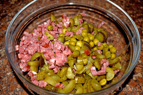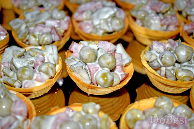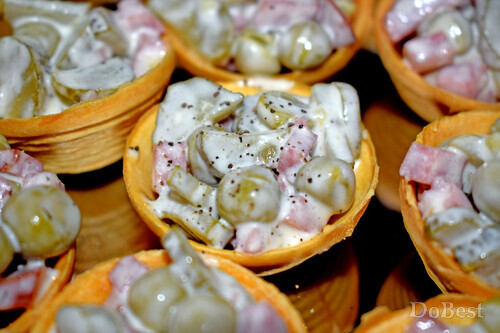 ![]() Ингредиенты Салями горячего копчения — по вкусу Консервированный зеленый горошек — по вкусу Маринованные огурцы — по вкусу Майонез — по вкусу Тарталетки — по вкусу ![]() Приготовление Нарезать колбасу и огурцы. ![]() Смешать все в салатнице, включая консервированный зеленый горошек. ![]() Заправить майонезом. Перемешать. Подготовить тарталетки. ![]() Чайной ложкой наполнить их начинкой. ![]() При желании тарталетки можно посыпать черным молотым перцем и/или украсить веточкой петрушки. ![]() Смотрите также...