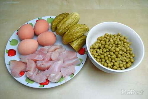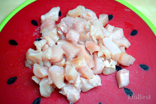 Нарезать кубиками куриное мясо.
