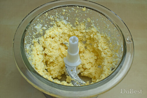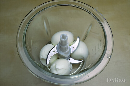 Очищенные вареные яйца измельчить в блендере.