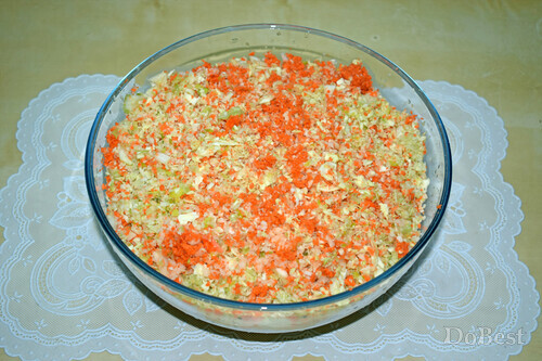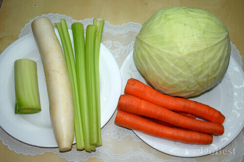 ![]() Ингредиенты Белокочанная капуста — по вкусу Морковь — по вкусу Белый редис — по вкусу Сельдерей — по вкусу Лук-порей — по вкусу Соль — по вкусу Сахар — по вкусу Столовый уксус — по вкусу Оливковое масло — по вкусу ![]() Приготовление Измельчить капусту, морковь, белый редис, сельдерей и лук-порей. Смешать все ингредиенты в салатнице. ![]() Добавить соль и сахар по вкусу. Заправить салат столовым уксусом и оливковым маслом. Дать настояться не менее 6-ти часов. ![]() Смотрите также...