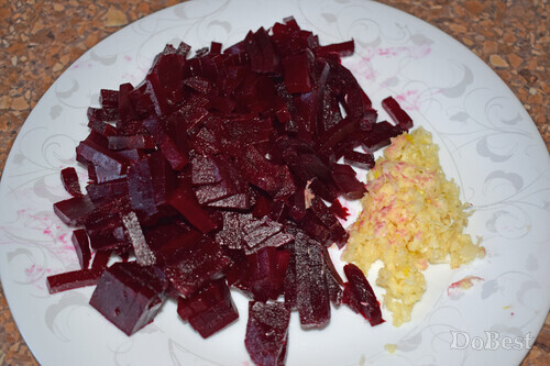 ![]() Ингредиенты Отварная свекла — по вкусу Чеснок — по вкусу Соль — по вкусу Майонез — по вкусу ![]() Приготовление Нарезать свеклу. Измельчить чеснок. Смешать все в салатнице. Посолить (по желанию). Заправить майонезом. Перемешать. ![]() Смотрите также...