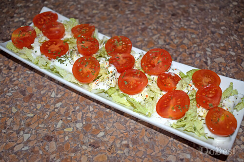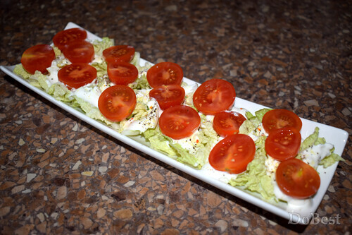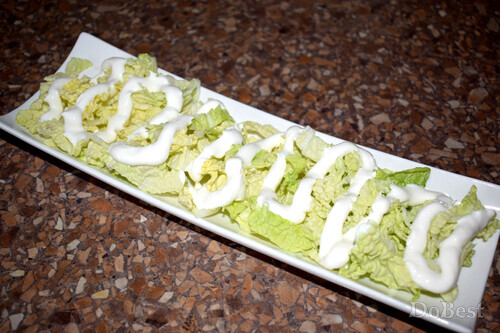 ![]() Ингредиенты Пекинская капуста — по вкусу Помидоры черри — по вкусу Сметана — по вкусу Соль или универсальная приправа — по вкусу Перец черный молотый — по вкусу Петрушка сушеная — щепотка ![]() Приготовление Нарезать пекинскую капусту. ![]() Выложить на сервировочное блюдо. ![]() Покрыть пекинскую капусту зигзагообразным слоем сметаны. ![]() Посолить и приправить черным молотым перцем. ![]() Нарезать половинками помидоры черри и выложить их наискосок по три кусочка. ![]() Немного посолить (или приправить универсальной приправой) и добавить щепотку сушеной петрушки для аппетитности. ![]() Смотрите также...