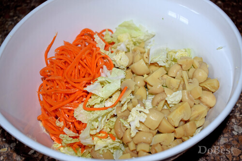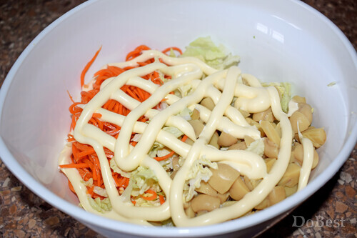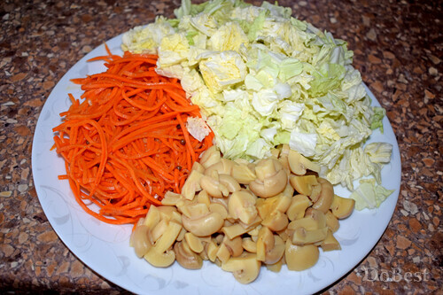 ![]() Ингредиенты Пекинская капуста — по вкусу Морковь по-корейски — по вкусу Маринованные шампиньоны — по вкусу Майонез — по вкусу ![]() Приготовление Нарезать пекинскую капусту и шампиньоны. ![]() Смешать в салатнице пекинскую капусту, шампиньоны и морковь по-корейски. ![]() Заправить майонезом. Перемешать. ![]() Смотрите также...