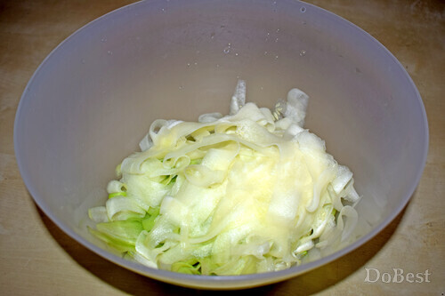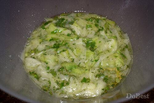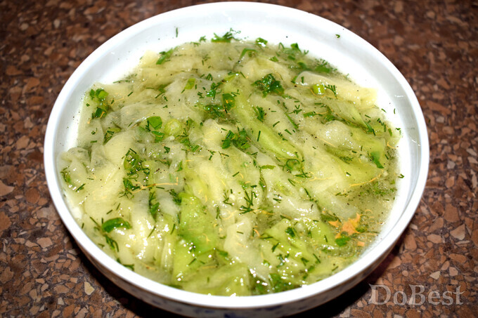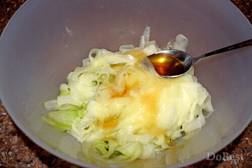![]() Ингредиенты Кабачок — 600-700 г Столовый уксус — около 50 мл Рафинированное растительное или подсолнечное масло — около 40 мл Мед — 3 столовые ложки Чеснок — 4 зубчика Зеленый лук — по вкусу Укроп — по вкусу Петрушка — по вкусу Соль — 1/2 чайной ложки Перец черный молотый — 1/3 чайной ложки ![]() ![]() ![]() ![]() ![]() Приготовление Очистить кабачок от кожицы. ![]() Нарезать кабачок тонкими полосками (исключая середину) и поместить в миску. ![]() Добавить уксус. ![]() Добавить мед. ![]() Измельчить чеснок и смешать его с остальными ингредиентами. ![]() Добавить соль и черный молотый перец. ![]() Перемешать. ![]() Измельчить зелень и добавить ее в миску. ![]() Перемешать и поставить в холодильник мариноваться не менее 3 часов. ![]() Смотрите также...