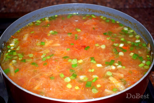 ![]() Ингредиенты Квашеная капуста — по вкусу Картофель — по вкусу Говядина — по вкусу Морковь — по вкусу Зеленый лук — по вкусу Перец чили — по вкусу Соль — по вкусу Приправы — по вкусу ![]() Приготовление Нарезать картофель, говядину, зеленый лук, перец чили. Натереть на терке морковь. Поместить все ингредиенты, кроме зеленого лука, в подсоленную кипящую воду. ![]() Добавить приправы по вкусу. Варить суп не менее 50 минут на медленном огне. ![]() За пару минут до окончания приготовления супа добавить в него зеленый лук. ![]() Смотрите также...