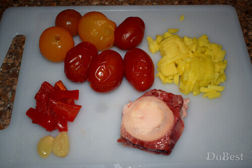 ![]() Ингредиенты Маринованные помидоры — по вкусу Картофель — по вкусу Говяжья кость — 1-2 шт. Маринованные сладкие перцы — по вкусу Маринованный чеснок — 1-3 зубчика Соль — по вкусу Зеленый лук — по вкусу Петрушка — по вкусу Розмарин — по вкусу ![]() Приготовление Мелко нарезать картофель. ![]() В блендере измельчить помидоры, перцы и чеснок. ![]() В кипящую воду поместить говяжью кость. ![]() Посолить и добавить картофель. ![]() Поместить в кастрюлю остальные ингредиенты, кроме зелени. Варить суп около 40-50 минут на медленном огне. ![]() За пару минут до окончания приготовления добавить зеленый лук, петрушку и свежий розмарин. ![]() Смотрите также...