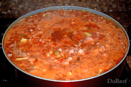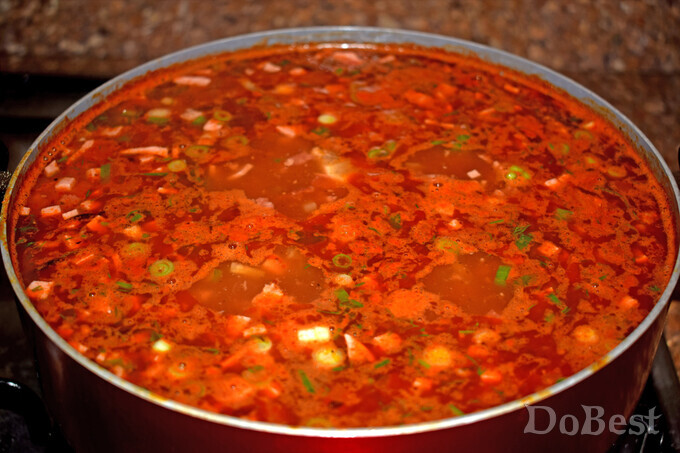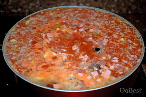 ![]() Ингредиенты Тушенка из свинины — по вкусу Докторская колбаса — по вкусу Салями — по вкусу Картофель — по вкусу Помидоры — по вкусу Маринованные огурцы — по вкусу Морковь — по вкусу Маслины — по вкусу Зеленый лук — по вкусу Лимон — по вкусу Томатная паста или томатный соус — по вкусу Соль — по вкусу Приправы — по вкусу Огуречный рассол — по вкусу ![]() Приготовление Нарезать картофель, докторскую колбасу и салями. Нарезать маринованные огурцы, помидоры, маслины, лимон и зеленый лук. Нарезать или натереть на терке морковь. ![]() Поместить в подсоленную кипящую воду с огуречным рассолом все ингредиенты, кроме зеленого лука. Перемешать. ![]() Варить около часа на медленном огне. За пару минут до окончания приготовления супа добавить зеленый лук. Перемешать. ![]() Смотрите также...
