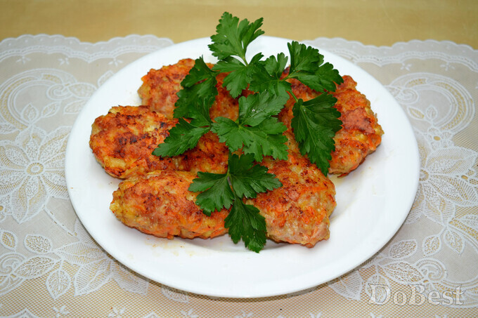 ![]() Ингредиенты Свиной фарш (можно использовать куриный) — 700 г Морковь — 1 шт. "Российский" сыр — по вкусу Яйца — 2 шт. Мука — 4 ст. ложки Соль — по вкусу Приправы — по вкусу ![]() ![]() Приготовление Измельчить морковь и сыр. ![]() Смешать фарш с морковью и сыром. Добавить 4 столовые ложки муки и два сырых яйца. Приправить солью и специями на свой выбор. Хорошо перемешать массу. ![]() Лепить котлеты и класть их на разогретую сковороду с достаточным количеством растительного масла. ![]() Жарить котлеты на среднем огне, периодически переворачивая. ![]() Смотрите также...