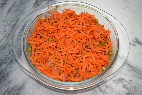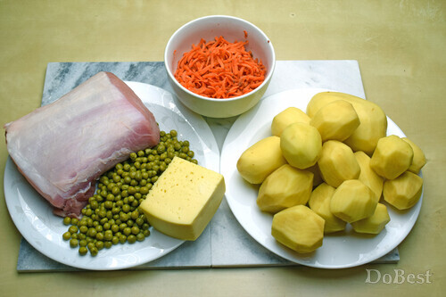 ![]() Ингредиенты Картофель — по вкусу Свинина — по вкусу Морковь — по вкусу Консервированный зеленый горошек — по вкусу "Российский" сыр — по вкусу Соль — по вкусу Приправы — по вкусу Майонез — по вкусу ![]() Приготовление Нарезать картофель дольками и выложить его в форму для выпекания. ![]() Добавить соль и приправы. ![]() Нарезать или натереть на терке сыр и выложить его поверх картофеля. ![]() Нарезать на кусочки свинину и выложить ее на слой сыра. Приправить мясо солью и специями. Следующим слоем выложить консервированный зеленый горошек. ![]() Натереть на терке морковь и выложить ее поверх горошка. ![]() Покрыть все слоем майонеза. ![]() Отправить запекаться в разогретую до 180° духовку на 60-90 минут. Время приготовления зависит от размера формы для выпекания, размера кусочков мяса и картофеля, а также количества слоев запеканки. Украсить блюдо зеленью (свежей или сушеной). ![]() Смотрите также...