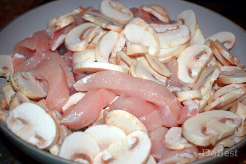 Приготовление Нарезать куриное филе и шампиньоны. ![]() Выложить все на разогретую сковороду с небольшим количеством растительного масла. Приправить солью и специями, покройте сверху слоем майонеза, затем перемешайте. ![]() ![]() Готовить на медленном огне около 20-30 минут, периодически помешивая.