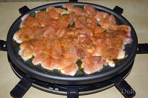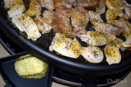 ![]() Ингредиенты Куриное мясо — 700-800 г Сыр — по вкусу Соль — по вкусу Перец черный молотый — по вкусу Перец чили молотый — по вкусу Карри — по вкусу Паприка молотая — по вкусу ![]() Приготовление Нарезать куриное мясо на кусочки. ![]() Смазать растительным маслом поверхность раклетницы. ![]() Нарезать сыр. ![]() Выложить мясо на разогретую верхнюю поверхность раклетницы. ![]() В специальных емкостях разместить по кусочку сыра. ![]() ![]() Приправить мясо солью и специями. ![]() Готовить мясные кусочки около 20-30 минут — по 10-15 минут с каждой стороны. ![]() Скорость плавления сыра зависит от его сорта. ![]() ![]() ![]() Смотрите также...
